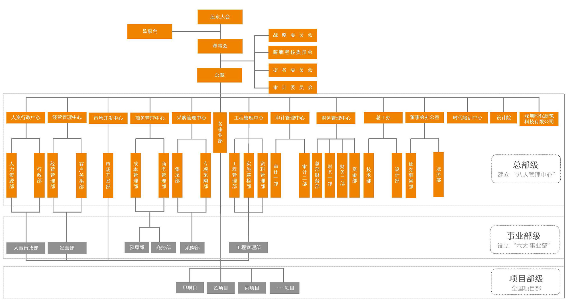公司以创新为驱动,自主研发信息管理软件,构筑由信息化向数字化迈进的数据管理平台,建立横向铺展、纵向深入的业务支持系统。如:实现工程项目的可视化管理与动态跟踪、采购工作全生命周期的过程管理、财务板块审核口径的统一及和业务端的无缝链接、人力资源信息的集中管理、行政数据的高效归集与获取等。依托自主研发的EC系统,公司内部形成了层级分明、职能清晰、权责明确的管控体系。