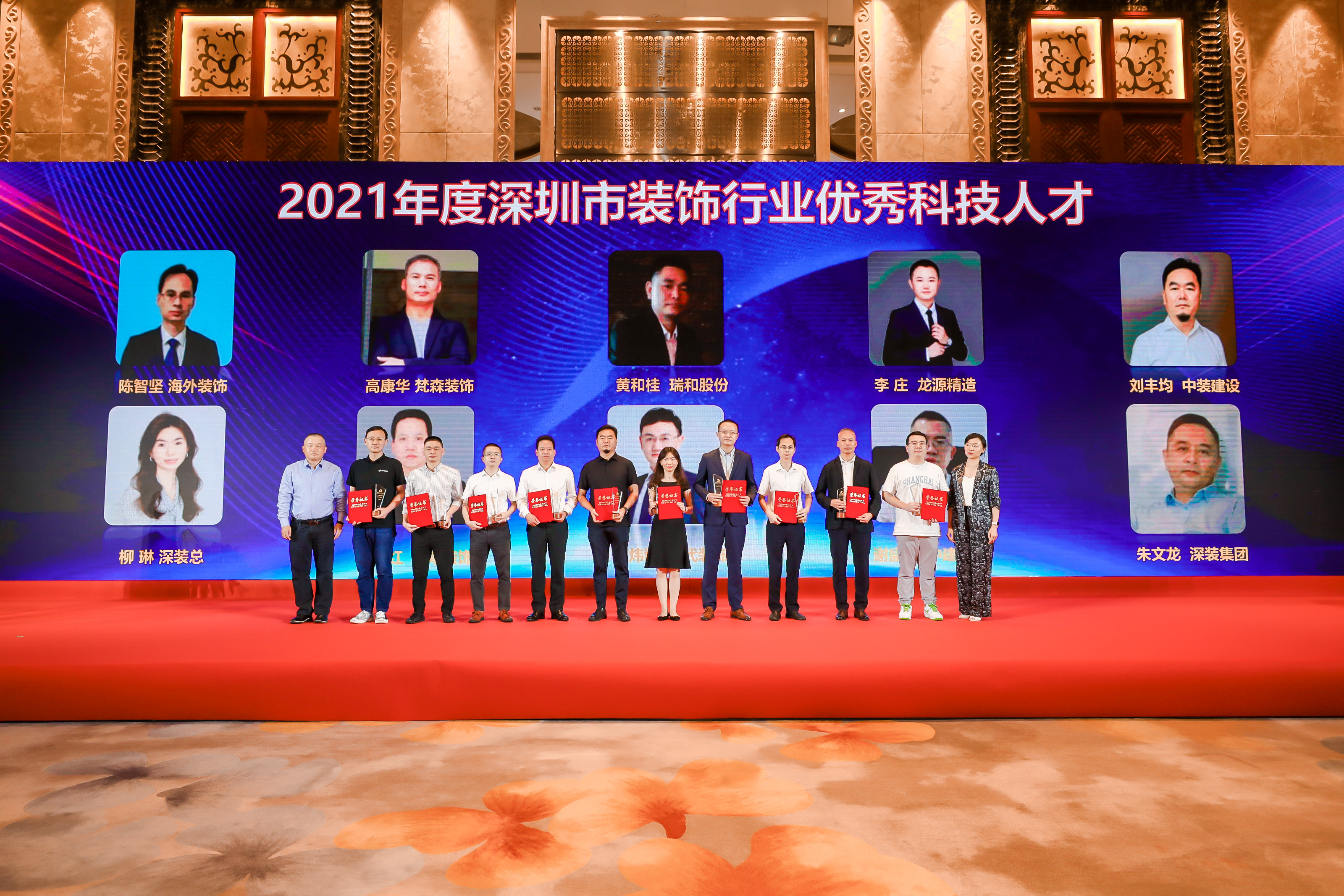大会最后对行业优秀党务人员、优秀科技创新人才等进行表彰,我司荣获行业四大奖项,分别是:中共深圳时代装饰股份有限公司支部委员会获得2021-2022年度先进基层党组织、公司董事长曲毅获得2021-2022年度优秀党支部书记、时代科技助理总经理王炜博获得2021年度行业优秀科技人才、公司行政主管付玎玎获得2021-2022年度优秀共产党员。