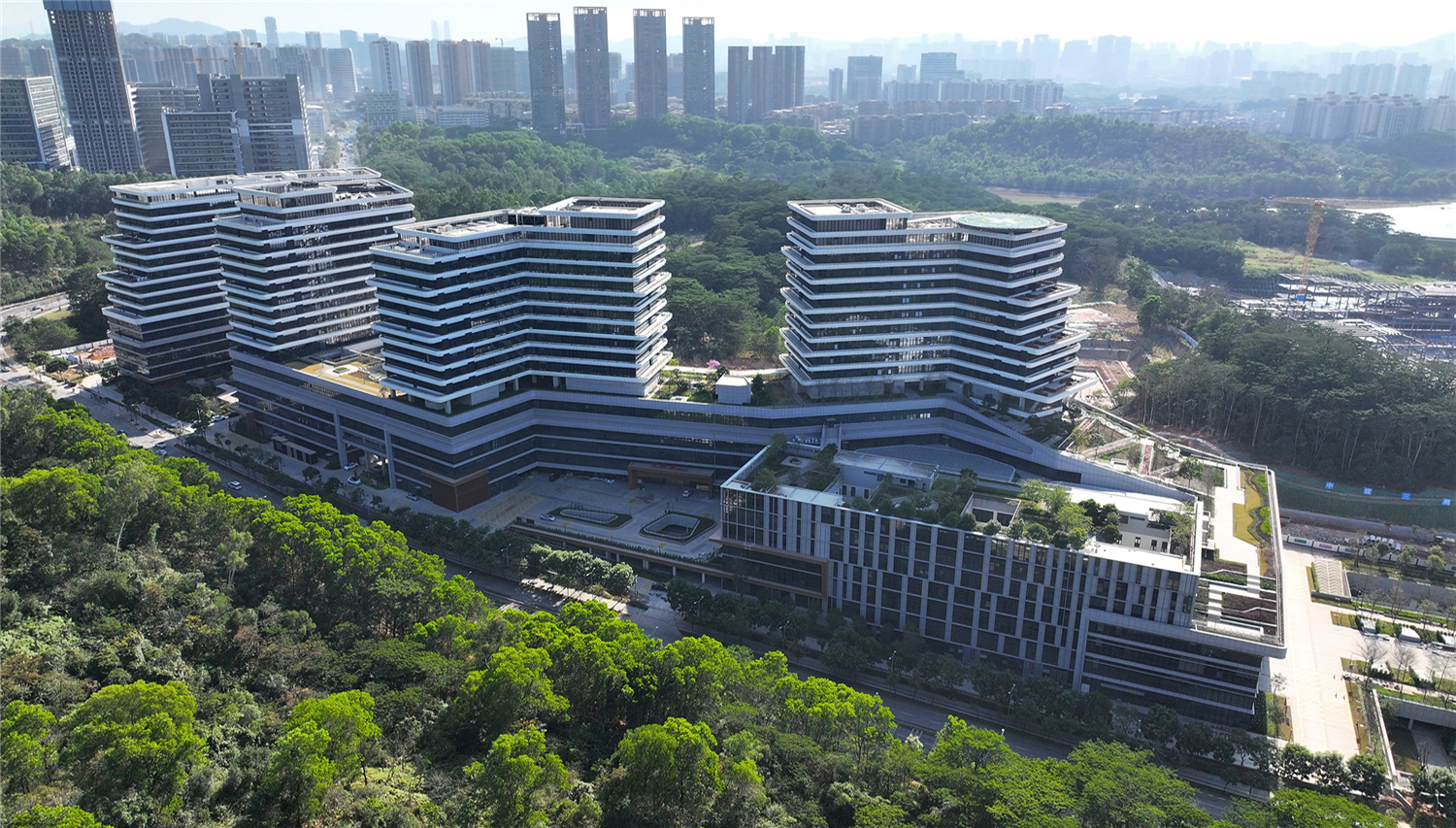 “依山傍水,生命绿动”。作为深圳市龙华区民生重点工程,龙华区综合医院项目建筑面积35.59万㎡,建筑高度 36.5~80.5米,按三级甲等医院标准进行建设,是深圳打造“民生幸福标杆”的强有力支撑,更展现了医疗建筑的新风貌。
